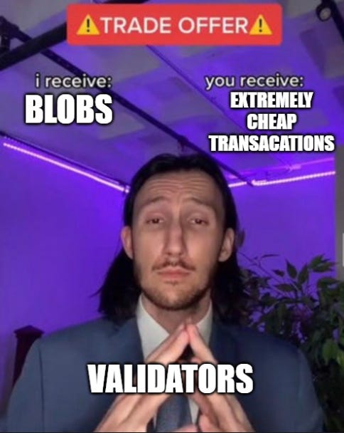 Tras la actualización de PDS en EIP-4844, los validadores en Ethereum mainnet podrán procesar tanto la ejecución L1 como los blobs (que contienen datos L2 y liquidación/pruebas). ¿Y lo mejor? Por primera vez, podremos tener mercados de tarifas separados para estos dos conjuntos de datos.